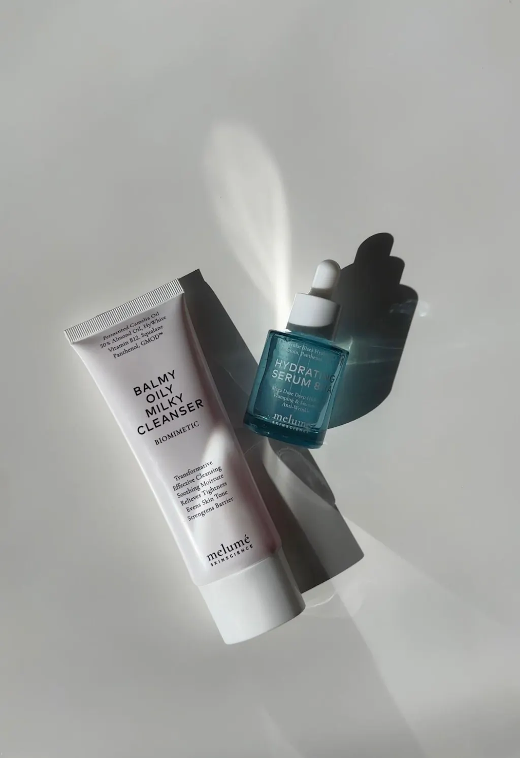 Melumé hyaluronic acid serum is infused with 8 different sizes of hyaluronic acid for intense plumping multi-level hydration and anti-wrinkle benefits.